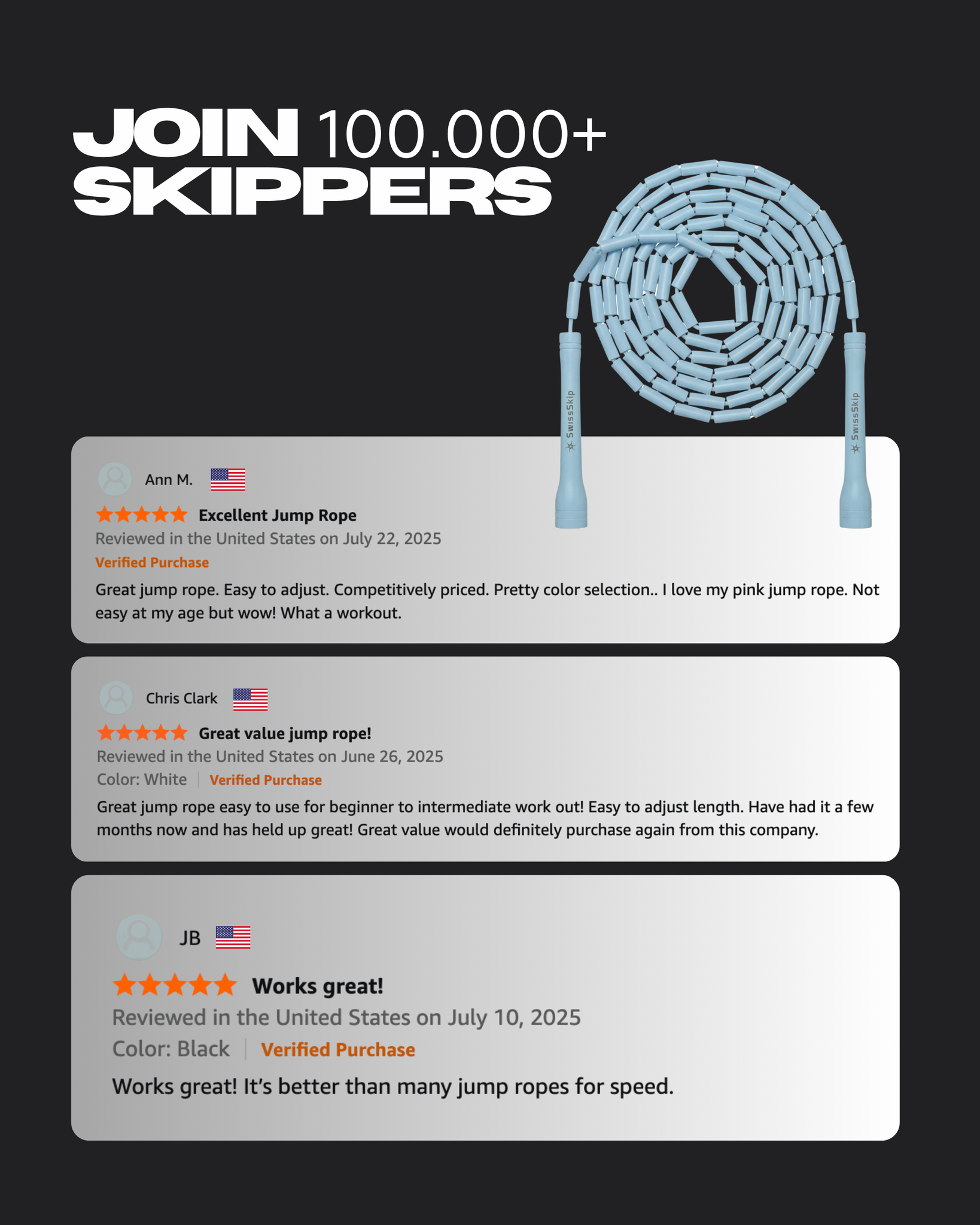 Definitely. Jump rope is a low-impact, joint-friendly workout when done with proper form. Many people in their 40s, 50s and even 60s use it to improve coordination, balance, and cardiovascular health. Start at your own pace, keep your jumps low, and you’ll quickly build rhythm and endurance.