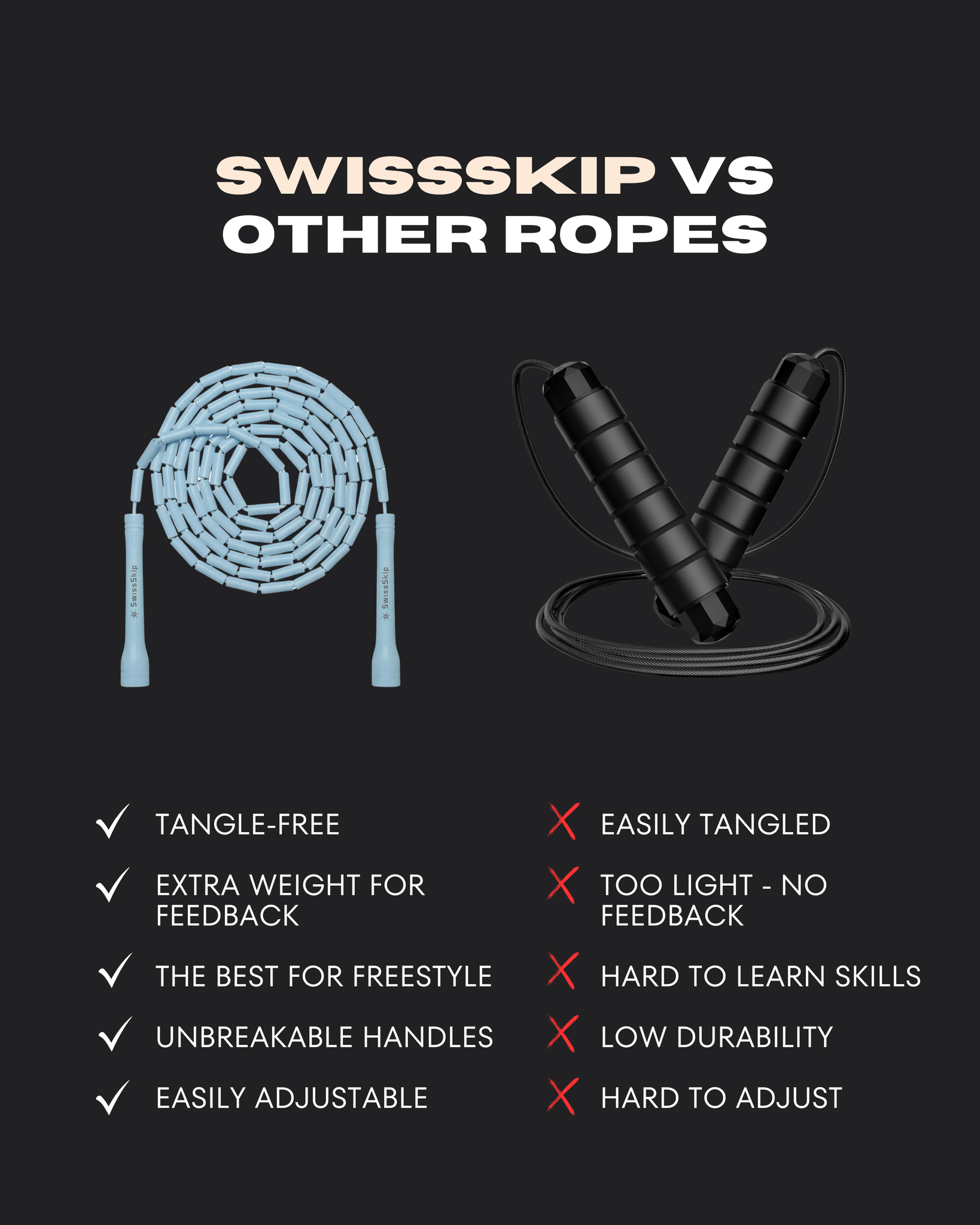 Most ropes tangle. They drag, snag, bounce unpredictably, and force you to quit after 10 jumps — which makes you disappointed in not reaching your goals. But the tangle-free beaded mechanism keeps every rotation smooth, so you stop tripping and can finally skip for 5 minutes straight.