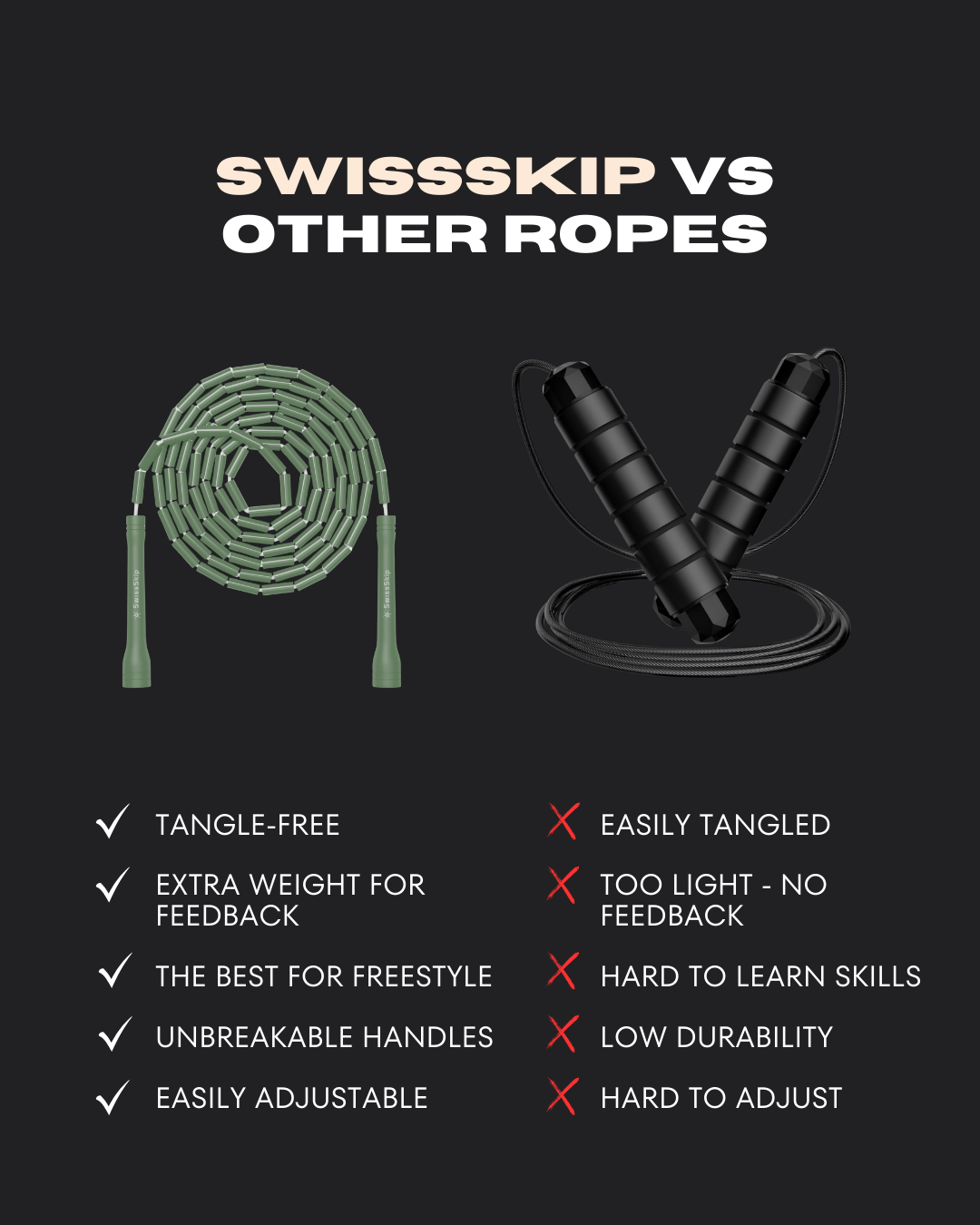 • Beaded or 5 mm PVC gives better “feedback” (you can feel the rope), which makes learning timing easier. Heavy ropes are harder for complete beginners.